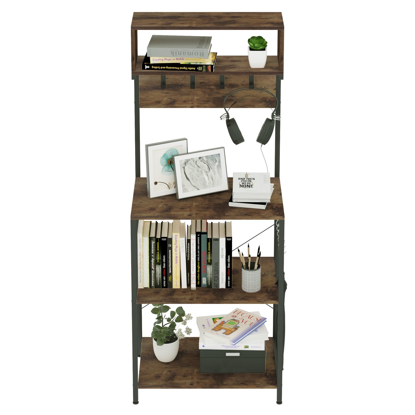 Étagère Debout avec 10 Crochets, Bibliothèque 5 en 1 pour la Cuisine et le Salon, HOShelf en Métal et Bois