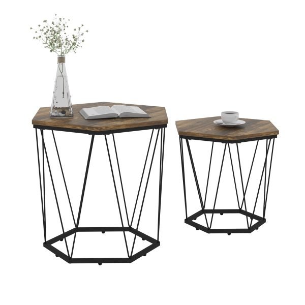 Tables basses style industriel, Tables basses hexagonales en acier noir, tables d’appoint pour canapé